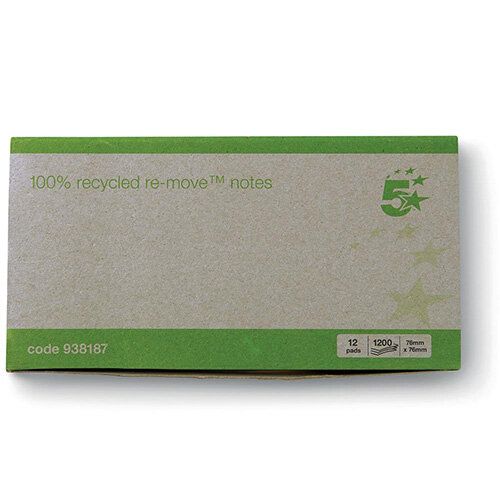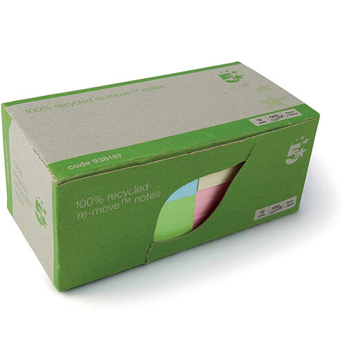 5 Star Eco Repositionable Notes 76 x 76mm Pastel (Pack of 12 Pads 100 Sheets Per Pad)