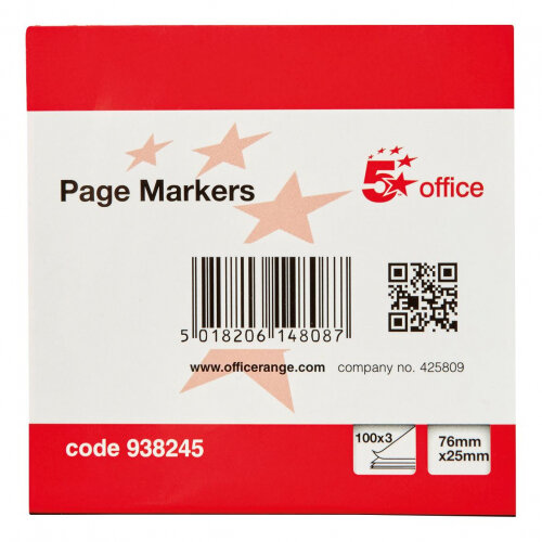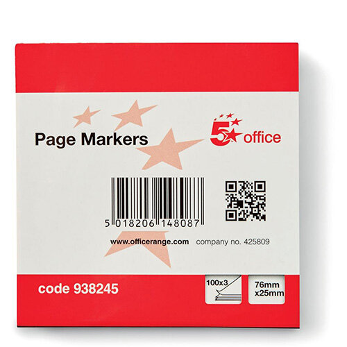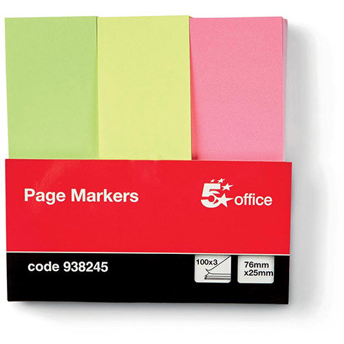 - 5 Star Office Paper Page Markers 100 Sheets per Pad 25x76mm