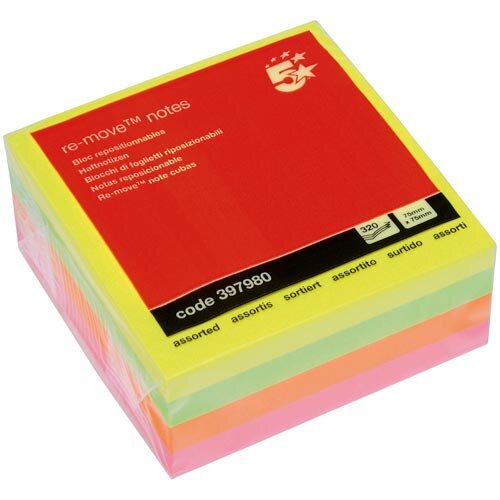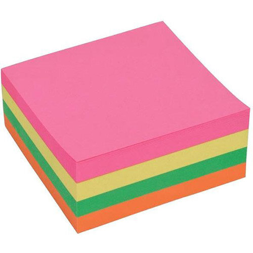 Sticky Notes Cube Pad Overview: Brighten up your office space with the Neon Sticky Notes Cube Pad from 5 Star. This colourful sticky notes cube pad will ensure that important notes are seen with the neon colours yellow, pink, green and orange. The sticky notes cube pad contains 400 sheets with a strong adhesive which can be placed on a wide range of surfaces around the office.