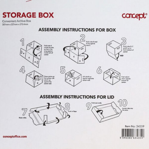 Supplied flat-packed for ease of transport/storage, These archive storage boxes are very easy to assemble, with instructions supplied on each box.