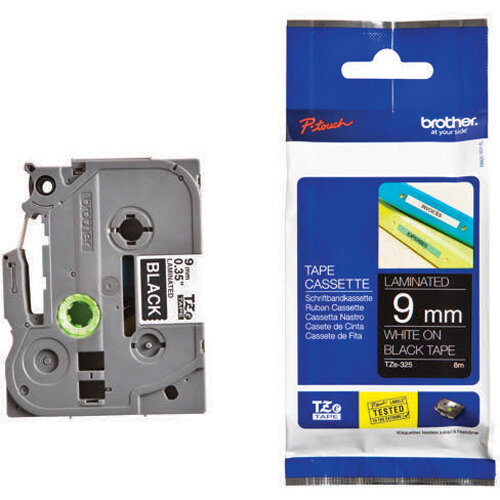 - Brother TZe-325 P-Touch Labelling Tape 9mm x 8m White on Black TZE325
