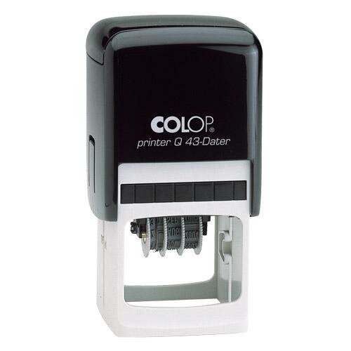 COLOP Printer Q 43 Square Dater Pre-Inked Rubber Stamp Black Ink Black Handle