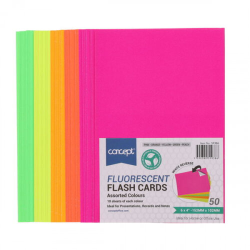 - Concept Fluorescent Flash Cards 6x4 Inch Pack of 50 - Bright Study Aids