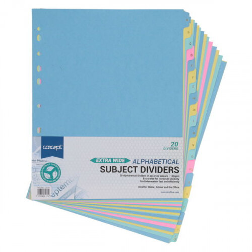 - Concept Extra Wide Alphabetical 20 Part Subject Dividers - for Efficient Filing
