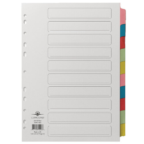 1. Concord Plastic 1-10 Index Europunched A4 Subject Dividers Assorted |