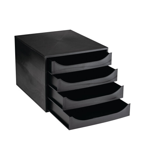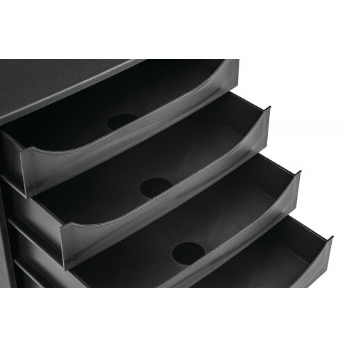 Ideal for desktop use, this Contour Ergonomics 4 Drawer Set features smooth opening drawers with finger holes for easy access. Suitable for A4 files and documents, the drawer set has a matte finish and comes in black.