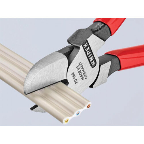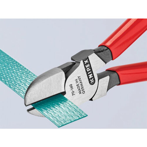 Knipex 70 01 Series Diagonal Cutters are made from vanadium electric steel, forged, multi stage oil-hardened. The cutting edges are additionally induction-hardened, cutting edge hardness approx. 62 HRC. Fitted with ergonomically PVC coated styled handles for added grip and comfort.