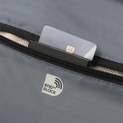 - Zip pocket with RFID blocker