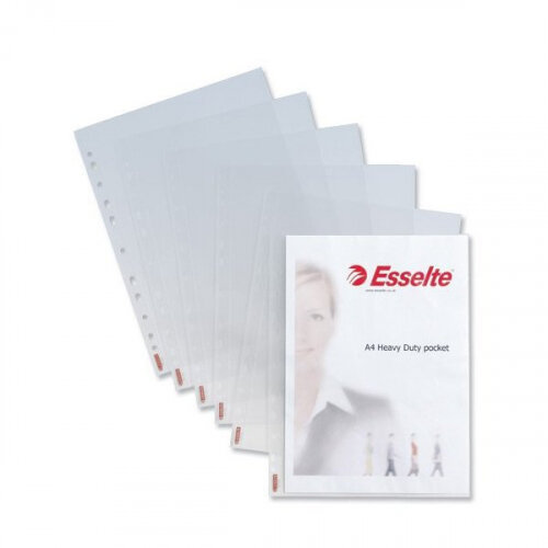 - Esselte A4 Heavy Duty Clear Punched Pockets - 105 Micron, Pack of 25