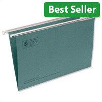 This bright, environmentally friendly Esselte Classic suspension file is made from 100% recycled, 210gsm board with a reinforced base for extra strength and durability. Suitable for filing A4 documents, the suspension file is supplied with a clear plastic label holder and matching white paper labels for quick identification of contents. Ideal for colour coordinated filing, this pack contains 25 blue suspension files.