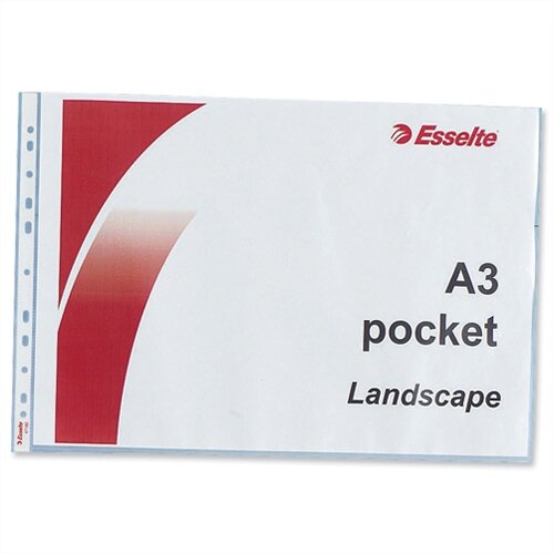 - Esselte A3 Punched Pockets Landscape Clear 75 Micron Pack 50