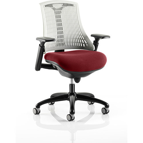 The Flex uses modern materials to create a chair that is practical and innovative with features such as pliable and flexible backrest, adjustable gel padded arms, a large cushioned seat with waterfall front and an enclosed mechanism.