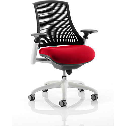- Flex Task Operator Office Chair White Frame Black Back Cherry Red Seat