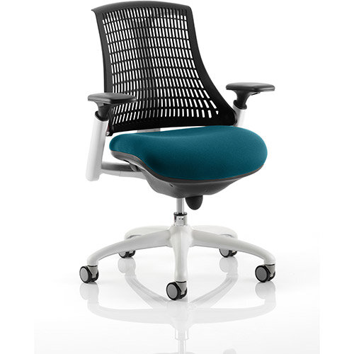 - Flex Task Operator Office Chair White Frame Black Back Kingfisher Green Seat