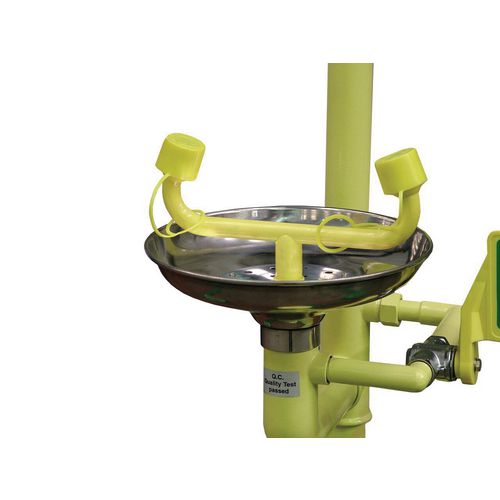 Manufactured using galvanised pipe work which is protected with an anti-corrosive Polyamide 11 high visibility yellow plastic coating to give good resistance to acids, bases, seawater and oils, all fittings are brass and the 250mmØ shower head and eyewash bowl are manufactured from stainless steel. The eyewash has two high flow, aerated low pressure outlets fitted with automatic opening dust covers. This combination safety shower and eyewash has been designed to meet and exceed the internationally recognised standards: EN15154 parts 1 & 2, DIN12899.3 and ANSI Z358.1. Water inlet: 1¼” BSP. Water inlet pressure: Recommended 2 bar with a maximum of 8 bar - please notify us prior to ordering if your water pressure is below 1.5 bar.