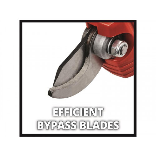 The high-quality bypass blades are designed for efficient cutting work and the accurate, clean and sharp cuts promote green growth. Its ergonomic handle with softgrip ensures comfortable working. An integrated safety switch ensures the safe use of the shears. The belt clip ensures optimal wearing comfort even in higher tree positions. Equipped with an on/off slide switch for activating or deactivating the shears. Supplied with a plastic blade cover for safe storage with the blade closed.