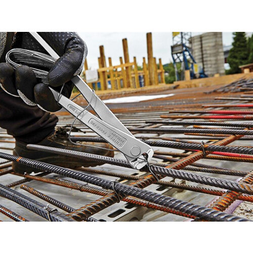 Made from special tool steel oil-hardened and tempered. An extra-slim form makes them ideal for tying submerged positioned steel rods. They provide a particularly high cutting capacity with minimum effort due to their optimum transmission ratio. High damping of the cutting stroke after cutting the binding wire reduces strain on tendons and muscles.