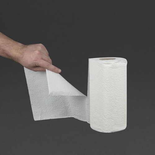Kitchen roll is an essential part of any catering company's cleaning supplies. Made from 2-ply paper for extra strength and absorbency, these Jantex kitchen rolls make wiping up spills and cleaning surfaces as easy as can be - using less sheets per cleaning task. The 11.5m length also ensures that each roll will last throughout multiple services and supplied in a pack of 24, each purchase is designed to last.