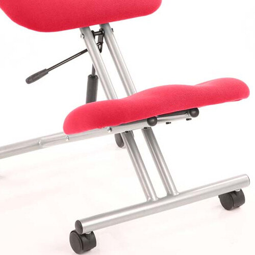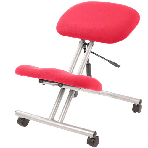 - Ergonomic Posture Kneeling Chair Stool On Castors Seat Height Adjustment Silver Frame & Bergamot Cherry Fabric Seat