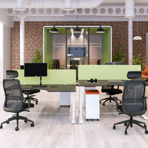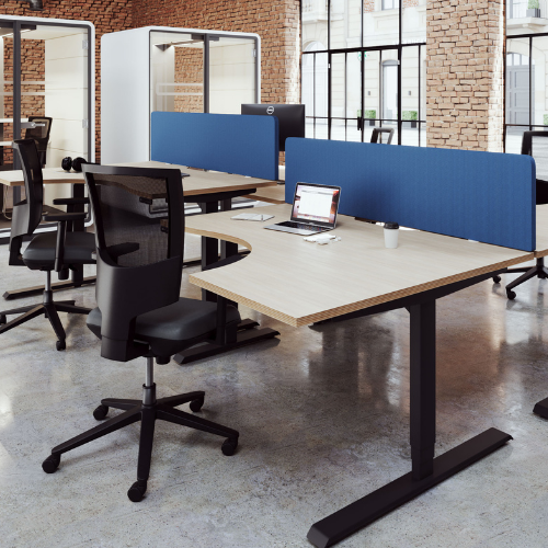 - LEAP Electric Dual Motor Height Adjustable Radial Right Hand Sit Stand Desk Portal Top W1600xD1200/800xH620-1270mm Beech Top Black Frame 10 Year Warranty