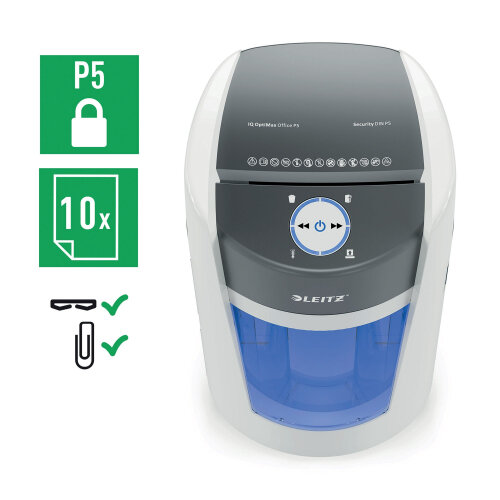 - Leitz IQ OptiMax Office Micro Cut Paper Shredder Security P5 35L - White