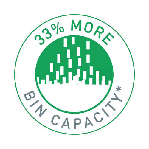 - Unique Bin Rotation Technology (BRT) maximizes bin capacity by 45% and significantly reduces mess when emptying