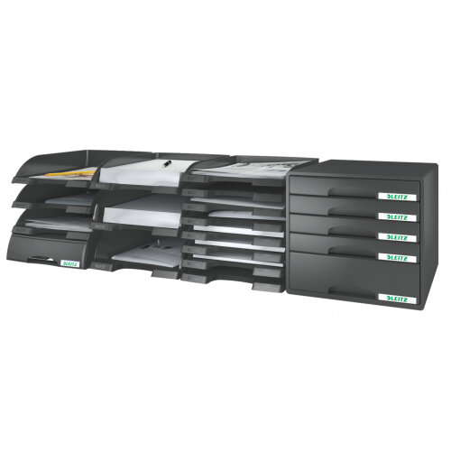 • Flexible desktop solution when used in combination with Leitz Plus letter trays Standard, Slim and letter tray drawer unit