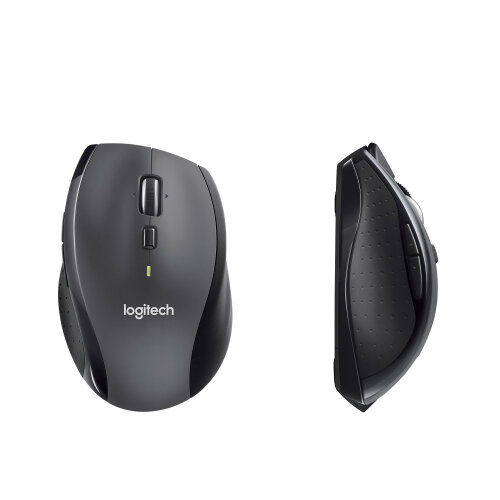 Logitech® Marathon Mouse M705 lets you power on... and on. It uses far less power than comparable wireless mice from other companies, so you'll go up to three full years between battery changes.* And it uses a tiny wireless receiver that stays plugged in to your computer, so your mouse is ready to go-whenever, wherever, and for as long as it takes. Plus, hyper-fast scrolling means you'll fly through long documents to find what you need in a flash. Laser grade tracking means you'll get smooth, responsive cursor control. And the sculpted, right-hand shape means you'll be as comfortable finishing up as you were getting started.