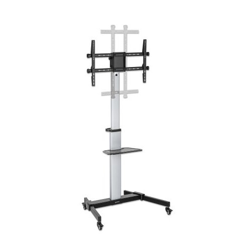- Manhattan TV & Monitor Mount, Trolley Stand, 1 screen, Screen Sizes: 37-86", -10 to 5° Tilt, 90° Rotation, Silver/Black, VESA 200x200 to 600x400mm, Max 50kg, Height adjustable 1200 to 1600mm, AV/Laptop shelf, Aluminium, LFD, Lifetime Warranty