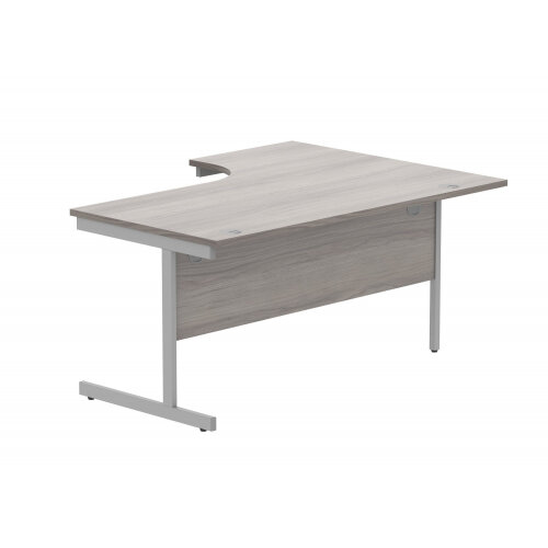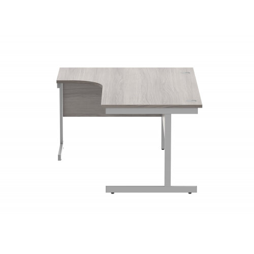 - Core Left Hand Corner Office Desk - W1800xD1200xH730mm - Alaskan Grey Oak - Single Cantilever Silver Frame