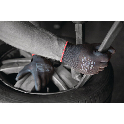 This pair of Polyco Matrix P Grip gloves feature a seamless knitted liner with a polyurethane palm coating and breathable, open back. Ideal for mechanics and other industrial applications, the gloves are abrasion and tear resistant, and have an elasticated wrist for a secure fit. This pack contains 1 pair of size 9 gloves in black.todelete