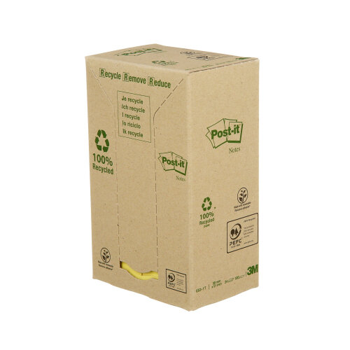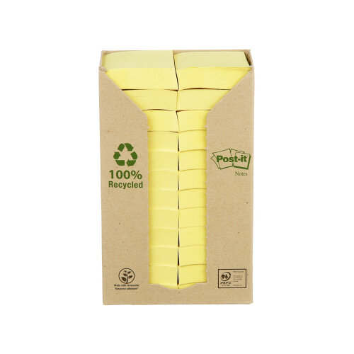 - Post-it Recycled Notes 38x51mm 100 Sheets Canary Yellow (Pack of 24) 653-1T