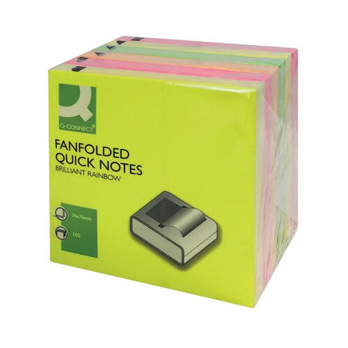 Supplied in a pack of assorted colours, including yellow, pink, green and orange, these 'Brilliant Rainbow' pack of six fanfold notes are ideal for use as quick flash reminders, jotting down notes, and more. Designed to pop up one after the other for easy, convenient access, these notes are suitable for refilling a Q-Connect fanfold note dispenser. Each pad measures 76 x 76mm and the pack contains 2 of each colour.
