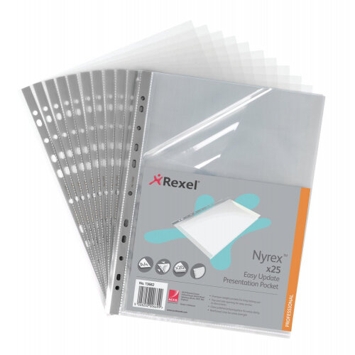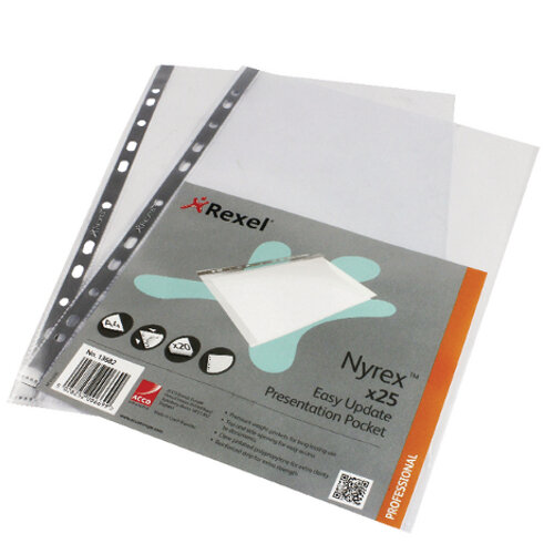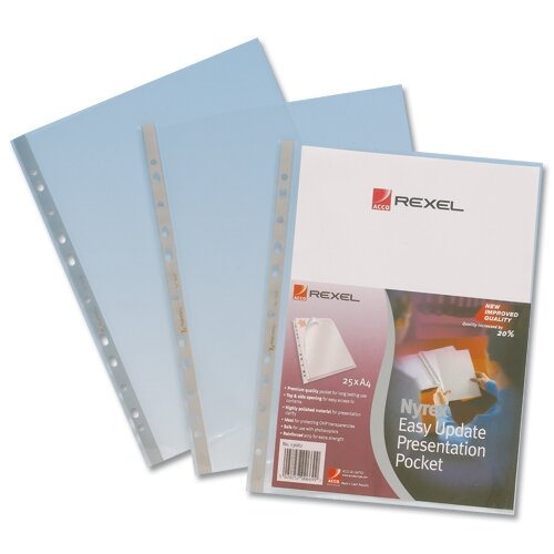 1. Rexel Nyrex A4 Presentation Pockets Multipunched Clear 90 Micron Pack 50 |
