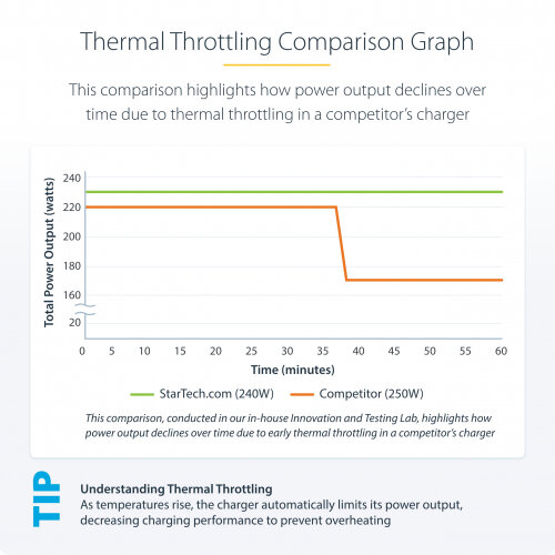 - STAYS COOL & NO THERMAL THROTTLING: GaN charger runs cool for hours under extended full-load use while providing consistent fast charging performance; No thermal throttling or shutdowns that slow down or interrupt the charging process