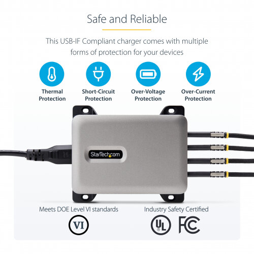 • Certified Safety: USB-IF compliant, and DOE Level VI energy-efficient, providing protection against over-voltage, overheating, and over-current.