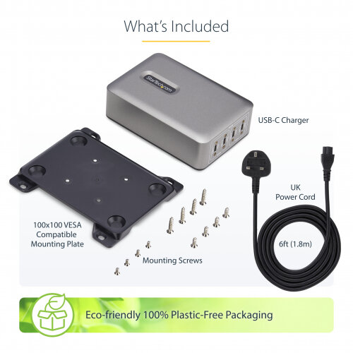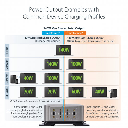 - StarTech.com 4-Port Multi-Device USB-C Charger, 240W Total, Single Port 140W EPR, PD 3.1, Screw Locking Ports, Boardrooms, Bracket incl. for Surface Mounting