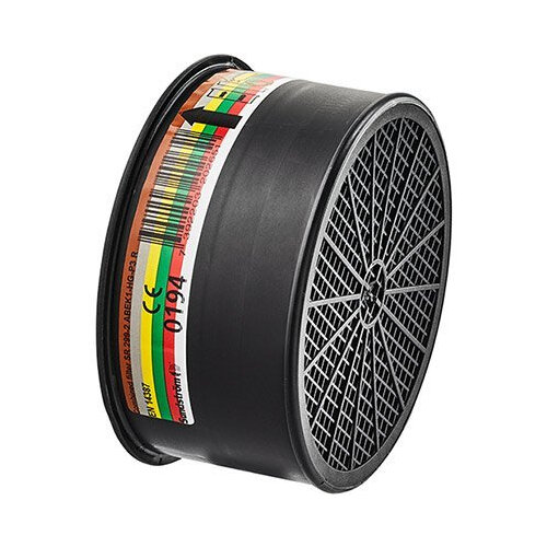 - Combination filter offering respiratory protection against organic vapours with boiling points above 65 degree s C, inorganic vapours, acid gases, ammonia, mercury vapour and particulates such as dusts, fumes and oil- and water-based mists