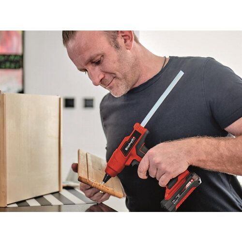 The Einhell TE-CG 18 Li - Solo Power X-Change Glue Gun is the ideal helper for amateur craftsmen and DIY enthusiasts in the workshed and hobby room for performing precise glueing jobs, filling cracks and gaps, and even for sealing fractures and hairline cracks.