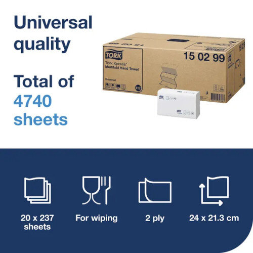 - Tork Pack of 4740 Xpress Multifold Hand Towel Universal H2 20 Sleeves White 150299