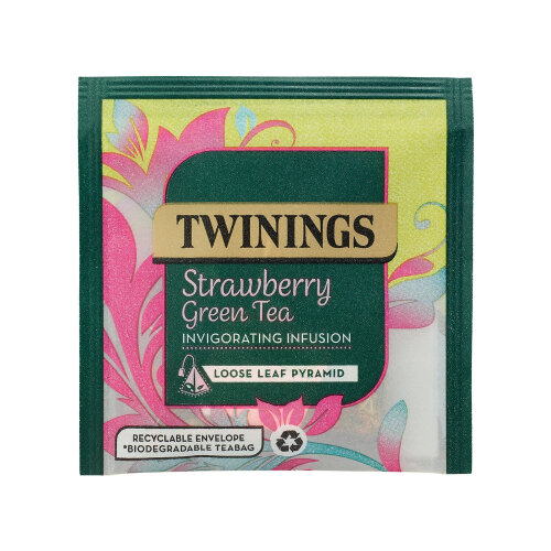 - Twinings Strawberry Green Tea Mesh Tea Bags Pyramid Envelope (Pack of 15) F16873