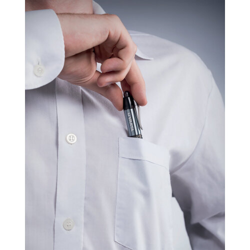 - The light can easily be attached and transported in a shirt pocket using the handy attachment clip