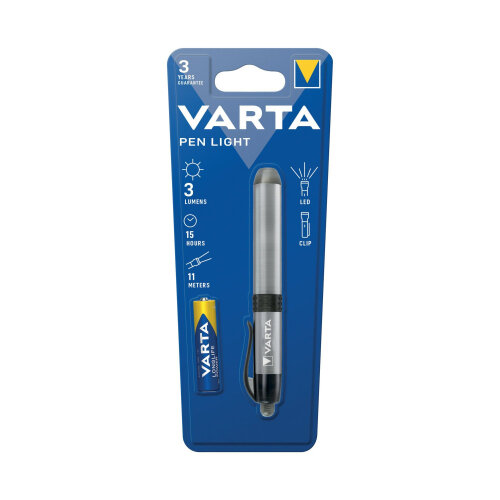 - Varta LED Pen Light 15 Hours Run Time 1 x AAA Battery Silver 16611101421