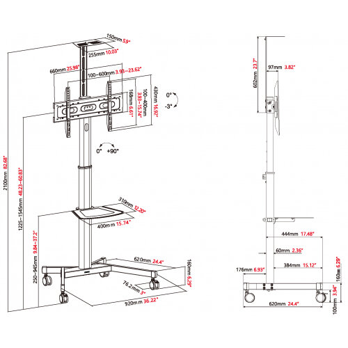 This cart is ideal for users who require the ability to rotate their display 90 degrees.