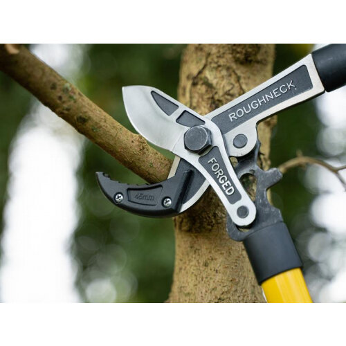 The Roughneck® XT Pro Anvil Loppers deliver a powerful cutting performance, and are drop forged for extra toughness. The high leverage compound cutting action offers an impressive 45mm cutting capacity, powering through dry or hard wood.